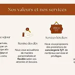 Te-/kaffebryggare finns i ett komplett kök som även har mikrovågsugn, kylskåp och köksredskap. Gästerna kan nå Brie Champniers flygplats inom 50 minuter med bil från villan.